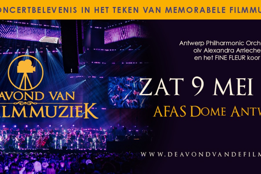 Zaterdag 9 mei 2026 verandert de AFAS Dome (het Sportpaleis) opnieuw in de grootste bioscoop van het land waar de meest iconische filmmuziek tot leven komt. Laat je op de tweede editie van ‘De Avond van de Filmmuziek’ meevoeren door meesterwerken van de bekendste filmcomponisten, live uitgevoerd door het Antwerp Philharmonic Orchestra onder leiding van de getalenteerde Braziliaanse dirigente Alexandra Arrieche.